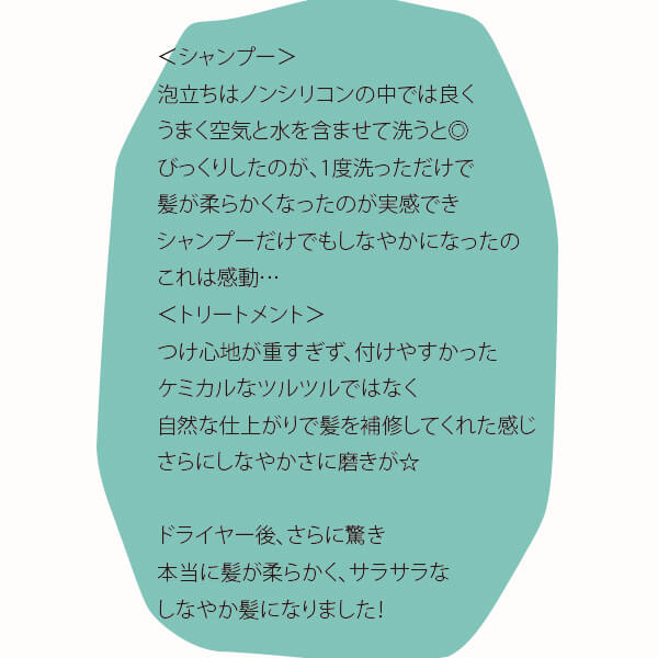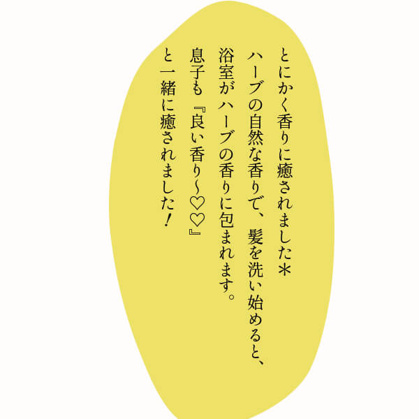 うねる・広がる・パサつく髪に潤いを与えるため、加水分解エンドウタンパク・アロエエキスなど保湿効果のある各種オーガニックハーブエキスを配合。