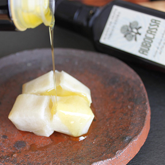 穏やかな地中海性気候のスペインのマヨルカ島のみで生産されるオリーブ種「アルベキーナ」100%で作られるアウボカーサ。まろやかで繊細な味わいが特徴です。