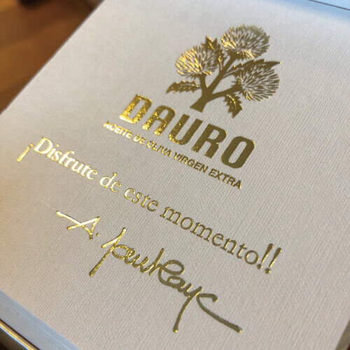 RODA社のCEOアグスティン・サントラヤ氏のサインが凹凸のあるゴールドの箔押しで入っています。